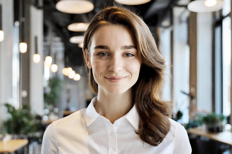 - 1 retuschiertes Portrait mit unscharfem Businesshintergrund in Farbe